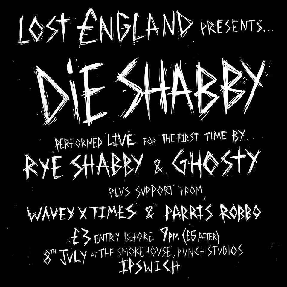 Rye Shabby & team presents to you the launch of LOST£NGLAND, a movement of creatives crossing many sectors & borders. On the night we will have a set from the don dadda Ghosty to kick things off playing you all new & old bits to get you jiggling, and we also have support from the incredible WaveyxTimes gang & the mega talented Parris Robbo. Photographic slideshows of work from our craaazy photographer/moment catcher/hooligan Gant will be shown through-out the night. All new music from the new e.p 'DiESHABBY' will be played live from Shabslimm & Forrest Moon. Come skank with us skanks! Doors open at 8pm, £3 admission before 9pm and £5 after (so get ya skates on).