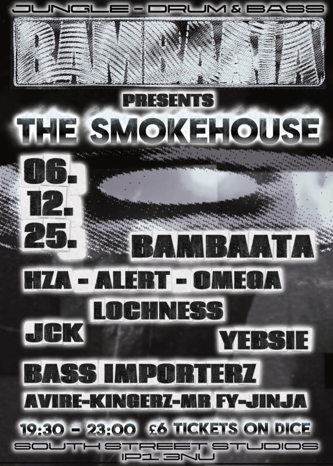 Bambaata returns to The Smokehouse for a night of jungle and drum & bass. Sets from:
